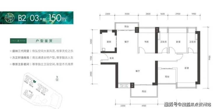 150㎡的4房2厅2卫,设计的是竖厅格局,南北通透双阳台,客厅6.3米大开间,进门入户玄关,4个卧室分别做到了3.5米/2.9米/2.8米/2.8米的宽度,U型厨房,卫生间干湿分离,得房率:75.66%(不含赠送),客厅阳台主朝西南向。