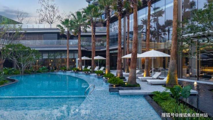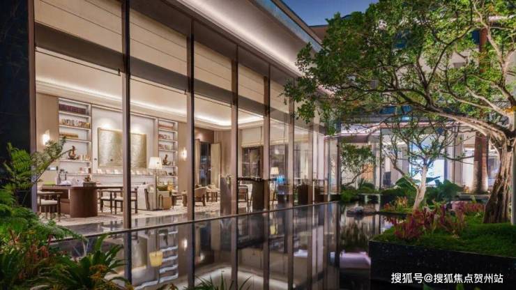 更难得的是,每一个功能都与自然融合。设计团队借鉴凤凰谷的山脉走势,通过花台、汀步、浮桥、叠石等手法,营造出生活馆后场的溪谷景观。书吧窗外是从湛江无人岛移植而来的海岛春花,私宴厅旁有寓意“一家人”的百年台湾相思树,健身房直面珠海首个住宅内的“沙漠绿洲”主题景观。