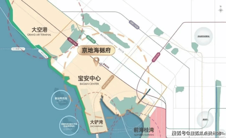 京地 海樾府项目位于深圳前海宝安中心区碧海区域,宝源路与金海路交汇处,总占地面积1.79万㎡,地上总建面约11万㎡,地下总建筑面约6万㎡,定位为高端城市综合体,其业态包含建面约55-105㎡2~4房高端住宅、星级酒店、精品公寓及办公。项目与地铁11号线碧海湾站无缝衔接,距离地铁1号线西乡站约700米,交通便利,是占据前海核心位置双地铁的优势资源。