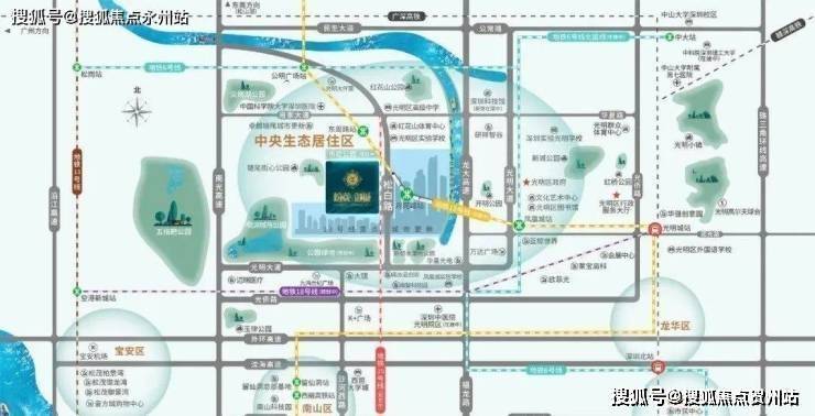 周边景观:南邻约58万㎡明湖城市公园,将成为集便民、互动、现代科技于一体的综合性城市公园。约6.8km茅洲河碧道、约7万m2鹅颈水湿地公园、约13万㎡尖岗湖公园、约27万㎡红花山公园、约42.9万㎡TOD公园绿地、约57.8万㎡新城公园、约392万㎡五指耙公园、约403万㎡虹桥公园。