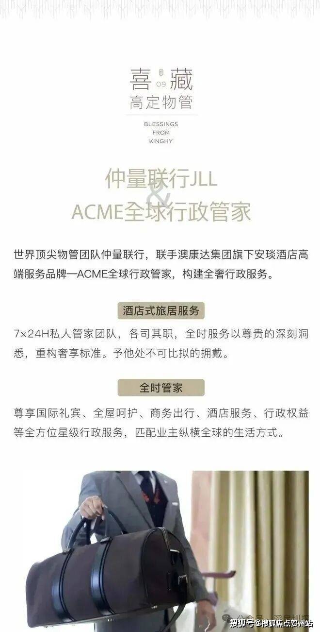 深谙时代掌舵者全球旅居生活的习惯与视野,璟喜采用澳康达集团旗下安琰AYEARN酒店高端服务品牌—ACME全球行政管家,以定制化酒店式旅居服务为内核,为塔尖圈层构建全奢行政服务。