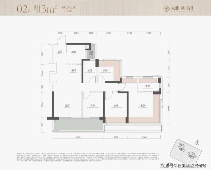 113㎡四房:巧妙“偷”出一房,主卧开间与进深均超4米,双面采光,衣帽间独立设计,还可与次卧打通扩大客厅;