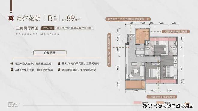 户型面积:建面约89-122㎡三至四房