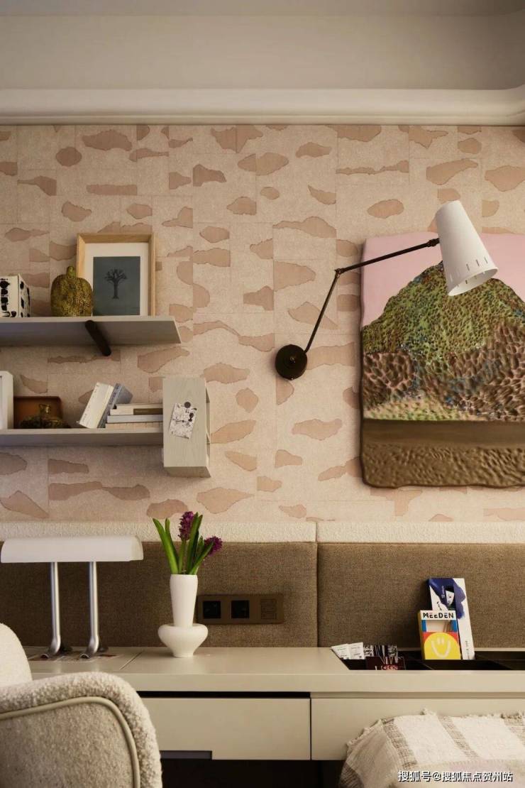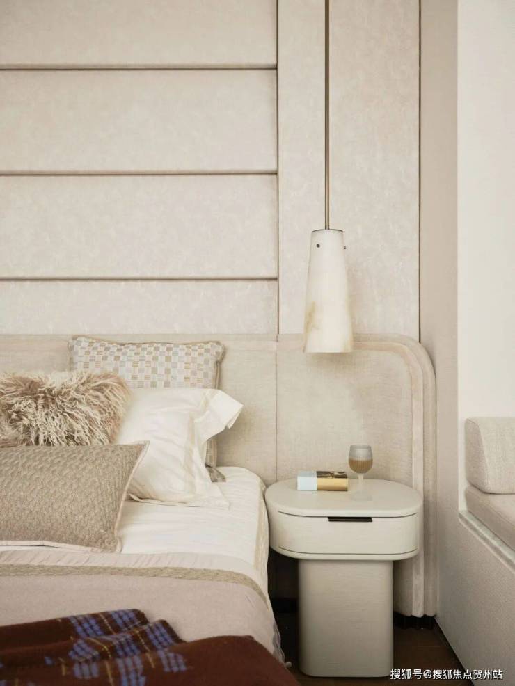主卧整体的色彩和形制偏向平实,通过硬装细节的打造和软装的灵动来活跃整个空间的氛围调性。