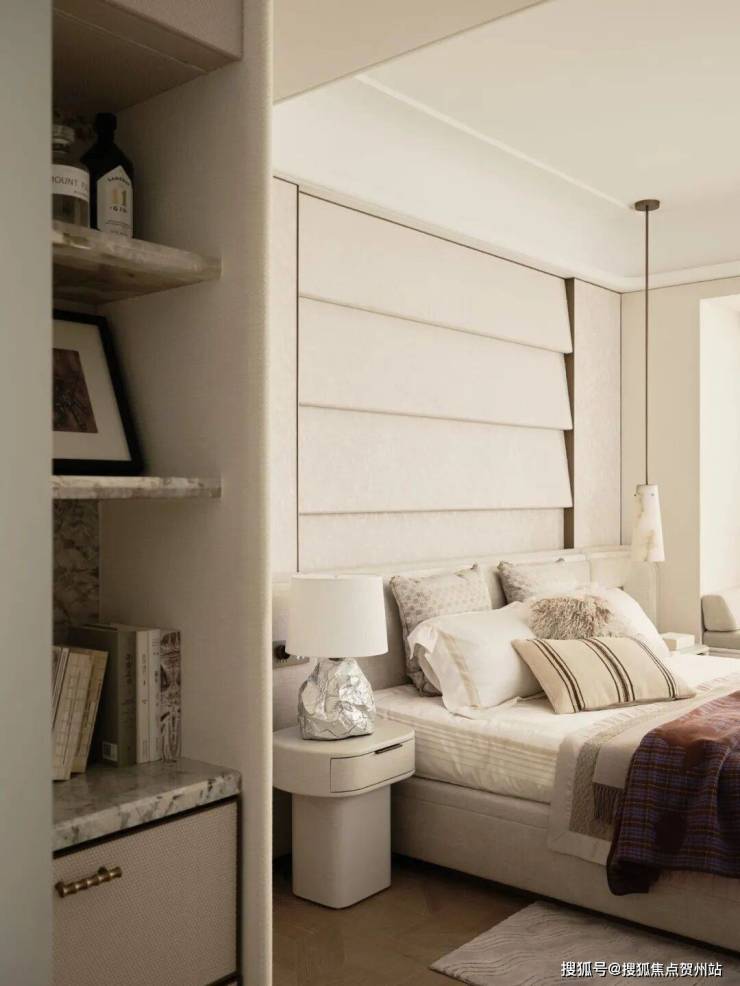 主卧270°超尺度转角飘窗让空间的功能构成更加饱满丰富,既可以成为观景的休闲区,也可以成为女主人日常的梳妆区。