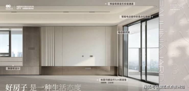 人性化品质精装交付、隐藏式音响接口预留(背景音乐)、预留电动窗帘电源;