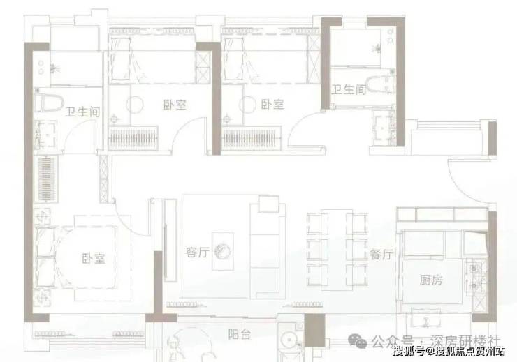 此户型为三面采光格局,整体空间明亮通透。L型厨房设计合理,操作便捷;明厨明卫,双面采光卧室,营造舒适的起居环境。该户型非常适合首次置业或预算有限的刚需家庭,在有限面积内实现了三房的功能性。