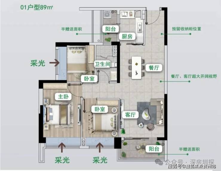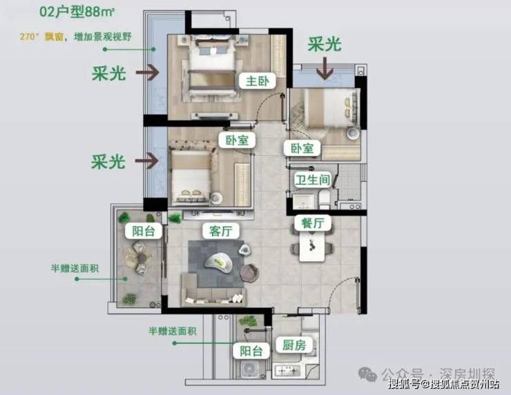 120㎡雙陽台南北對流,四房兩廳兩衛