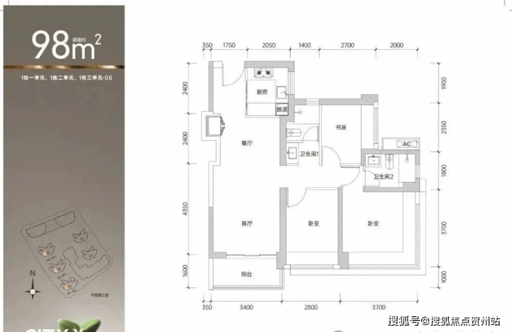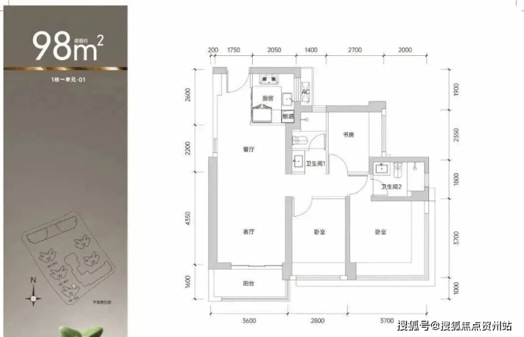 98㎡的3房2厅2卫,1栋1单元01户型,设计的是经典竖厅格局,进门入户玄关,客厅3.6米开间,LDKB一体化设计,动静分区,3个卧室分别做到了主卧14.3㎡/次卧10.36㎡/次卧6.75㎡(包含墙体飘窗),U型厨房,公卫三段式分离,得房率约75.4%(不含赠送),东北朝向。套内面积73.89㎡+赠送面积10.05㎡=实得83.94㎡,加上赠送后得房率约85.65%。还未推售