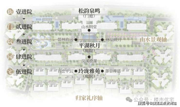 汲取岭南四大名园精华,布局两轴三庭,五进六园,尽显归家礼序。