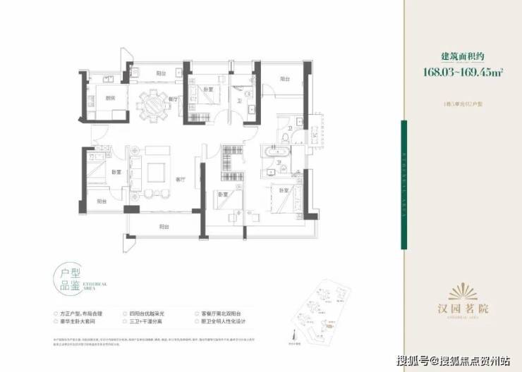 项目户型方正、布局合理,动静分区,其中168㎡五房户型为四阳台设计,客餐厅南北通透双阳台,豪华主卧大套房。