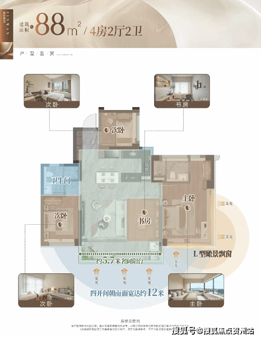 户型特点88㎡三房两厅两卫刚需入门款,LDKG 一体化设计,南向阳台搭配多飘窗91㎡四房两厅两卫爆款紧凑四房,全屋 9 个飘窗,无界大横厅布局99㎡四房两厅两卫南北通透,5.8 米开间大横厅,搭配 270° 环幕飘窗129㎡四房两厅三卫双套卧设计,南北双阳台,目前剩余天地楼层在售115㎡四房两厅两卫改善主力户型,客餐厨一体化,主卧套房带独立卫浴