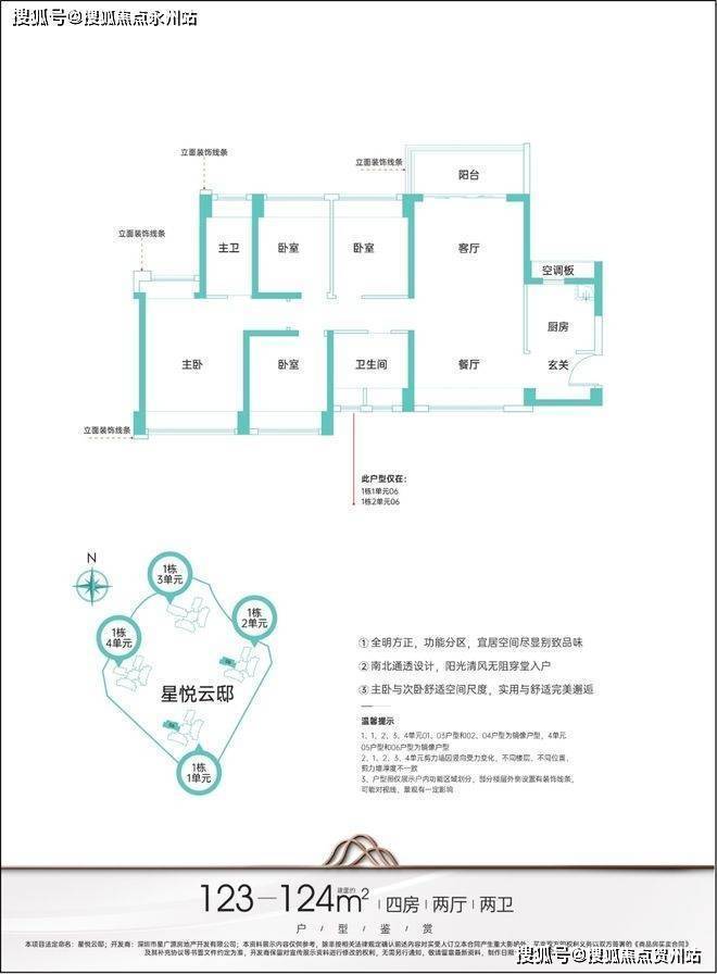 "悦享精研户型,主力户型95-124㎡三至四房,全明户型,通风采光好,卧室飘窗,打破常规,品质人居典范。"