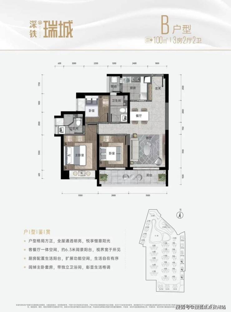 深铁瑞城,总占地面积约18.9万㎡,总建筑面积约64万㎡,计容建筑面积约57.7万㎡,容积率3.06,绿化率25%,项目共分3期开发,总规划4770户(其中商品房2770套,人才房606套,保障房1394套),停车位3202个(占比1:0.67)。