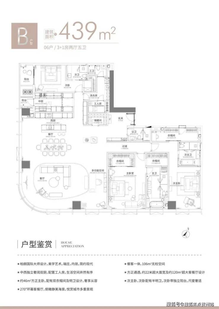 (2)B户型439㎡,折后总价2260--2590万(单价5.1-5.9万元/㎡);