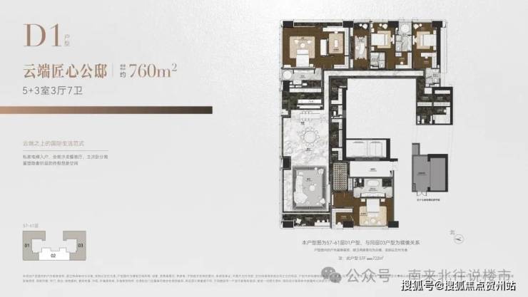 ◎建面约760㎡ 5+3室3厅7卫 云端匠心公邸