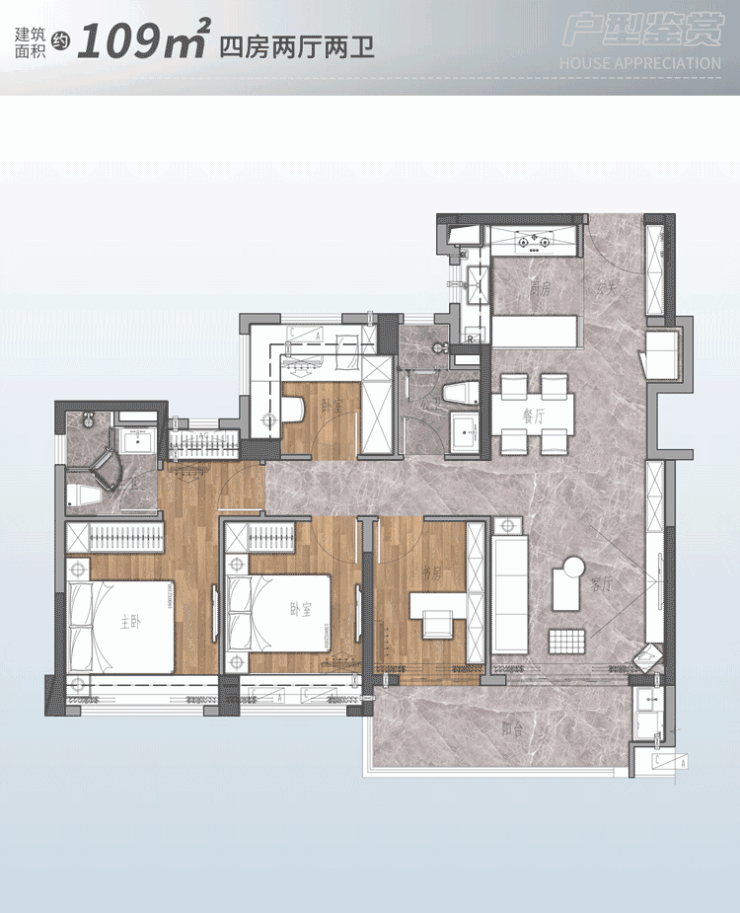 关键是,市面建面100㎡以三房为主,这个项目却施展出四房两卫的绝妙设计,多一间房,多的不止是空间,更是生活的从容与享受。