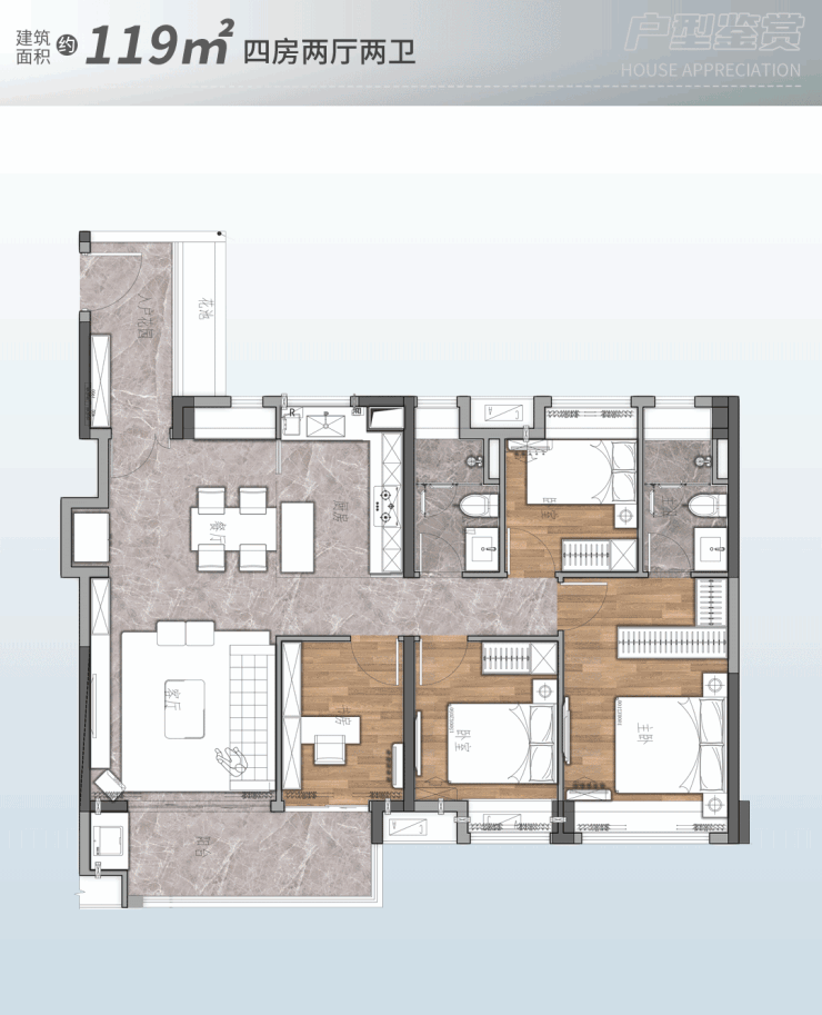 建面约139㎡4房2厅2卫