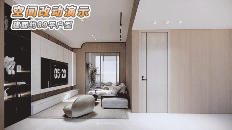 这还是一个百变户型,打通客厅和次卧,能将客厅从约3.2米宽瞬间拓展到约6.2米宽,空间尺度感拉满。