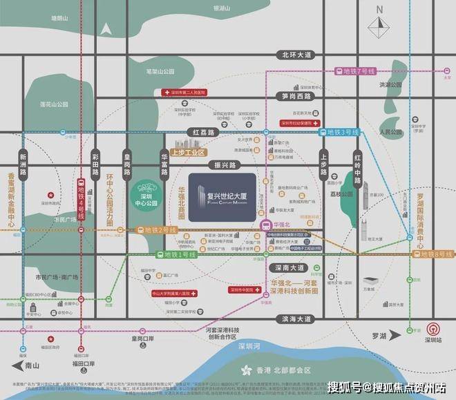 交通枢纽C位,地下商业直连2/7/8号线华强北地铁站,1站换乘1/3号线,四地铁/三大道/三大口岸/双高铁站