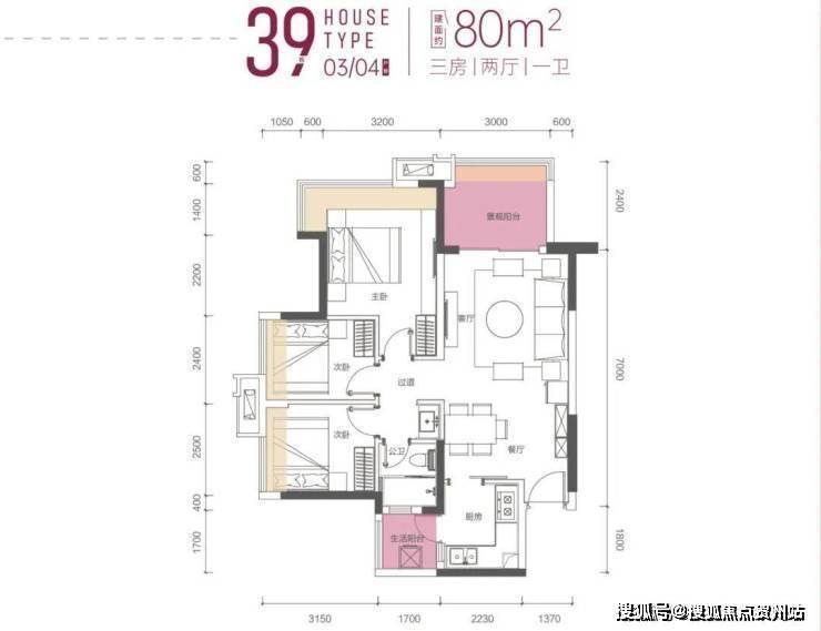 85㎡三房两卫(36、38、39栋户型基本一致)