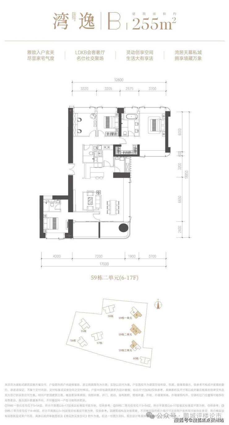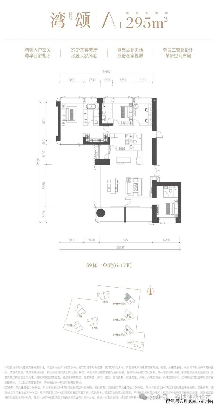 前海桂湾「前海时代尊府」取证加推最后大平层户型,为59栋的三个单元(59-1/2/3栋),面积约为215-255-295㎡,三梯两户,全南向景观,预计2026年交付。