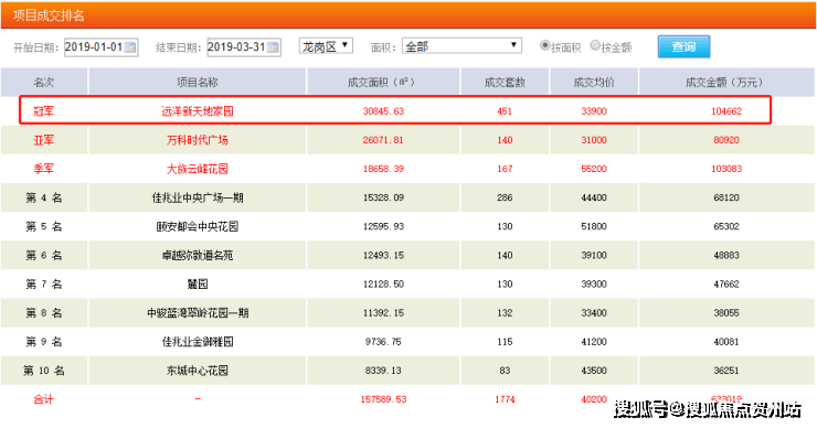 到了2019年,深房网成交数据显示:截至3月31日,远洋新天地以104662万元的成交金额, 维持龙岗片区今年以来商业物业销冠的宝座。