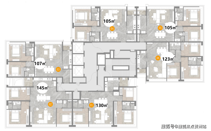户型鉴赏(105㎡~145㎡/3梯6户)