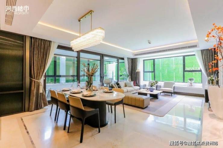 入户右侧为北向阔景大横厅,L型双面开窗的餐客厅,加上净高约2.85米的客厅层高,采光绝对让你眼前一亮↓↓