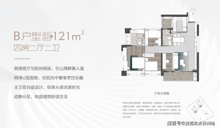 121㎡户型,打造4房2厅2卫开阔空间,竖厅与阳台相连,通风采光好,还可作为日常会客、家庭温馨互动的主场,动静分区,每个房间都很开阔,让每个人都住的舒舒服服。