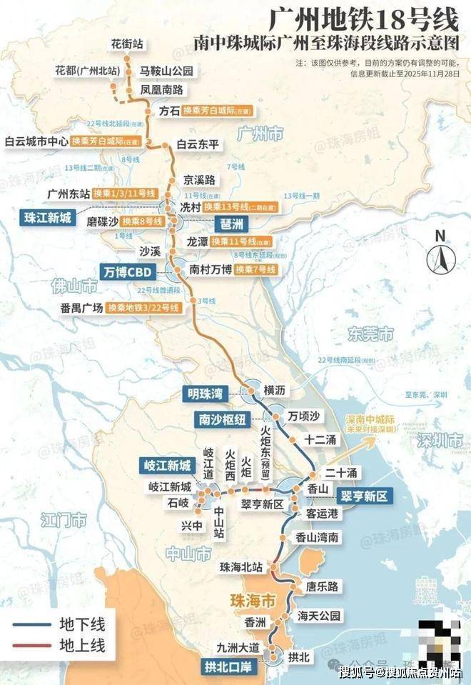 地铁:在建的广州地铁18号线,项目临近【拱北站】,沿途可达柠溪、香洲、唐家、中山、南沙等地,40-60分钟可达广州市区