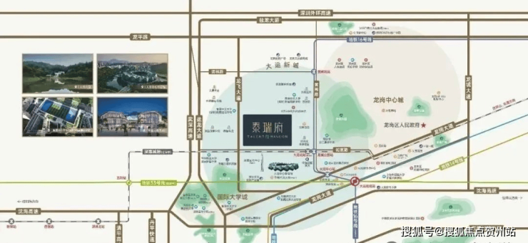 深业泰瑞府,位于龙岗大运新城如意路与龙飞大道交汇处北侧,周边都是近年新建的高档住宅小区,邻近深惠城际“大运北站”+16号地铁线“龙城公园站”。