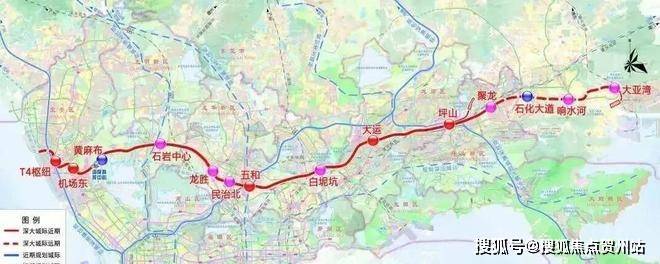 全线设地下站11座,分别为T4枢纽、机场东、黄麻布、石岩中心、龙胜、民治北、五和、白坭坑、大运、坪山、聚龙,预计 2026 年建成后,坪山至深圳机场最快仅需 40 分钟