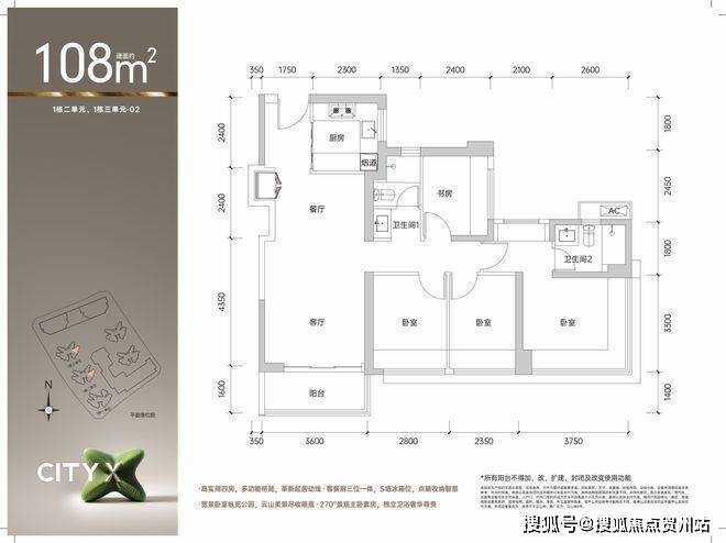 南北通透双厅设计,户型方正百变空间;双卫设计宜居便利,主卧270°宽景采光