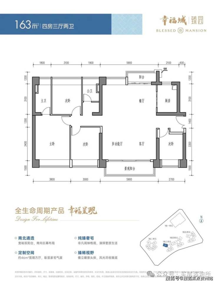约163㎡4房3厅2卫(方厅),折后:约1000-1030万。