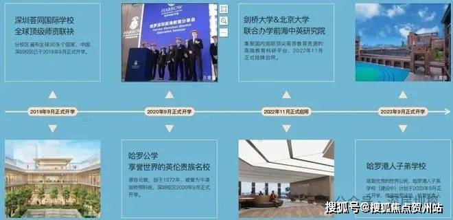 世界著名学校英国哈罗公学(已开学)、哈罗港人子弟学校(在建中)、美国荟同国际学校(已开学),以及剑桥大学&北京大学联合办学前海中英研究院(已开学)