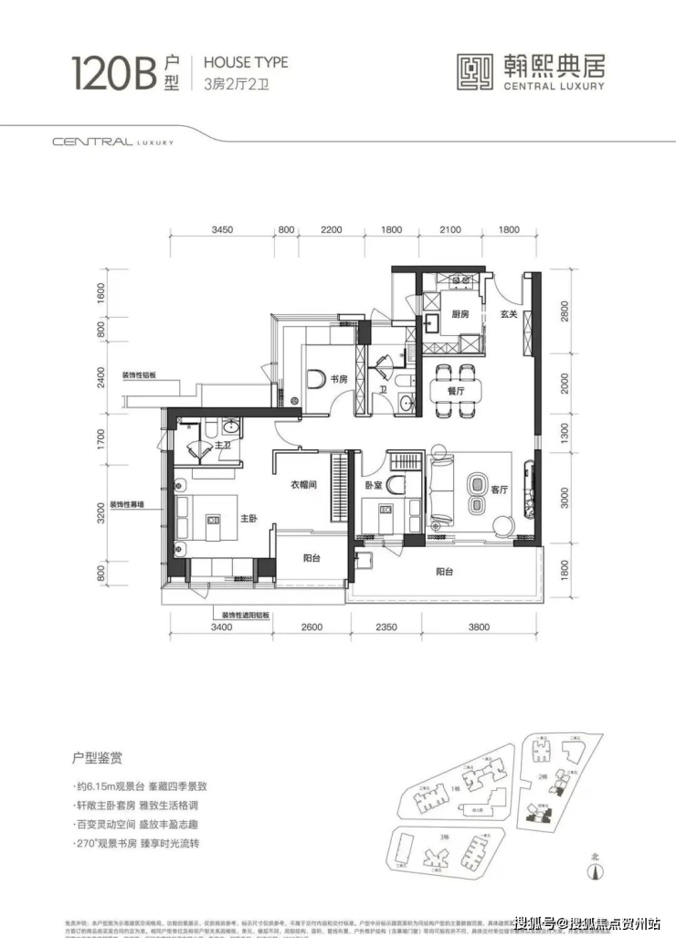 120㎡3+1房2卫1020-1200万