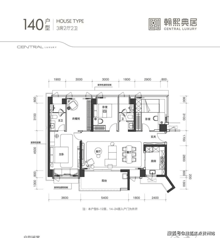 建面约140㎡的3房2厅2卫,该户型为 02 地块的唯一一条腿,非常稀缺。户型南北通透,带大主卧套房的奢居型三房。带 5.4m 观景台,大横厅奢阔空间设计,主卧同客厅阳台、餐厅三面宽朝西南。北向双次卧、双卫生间、拓展空间共五面宽一字排开,视野全面俯瞰社区内园林,静谧舒适。