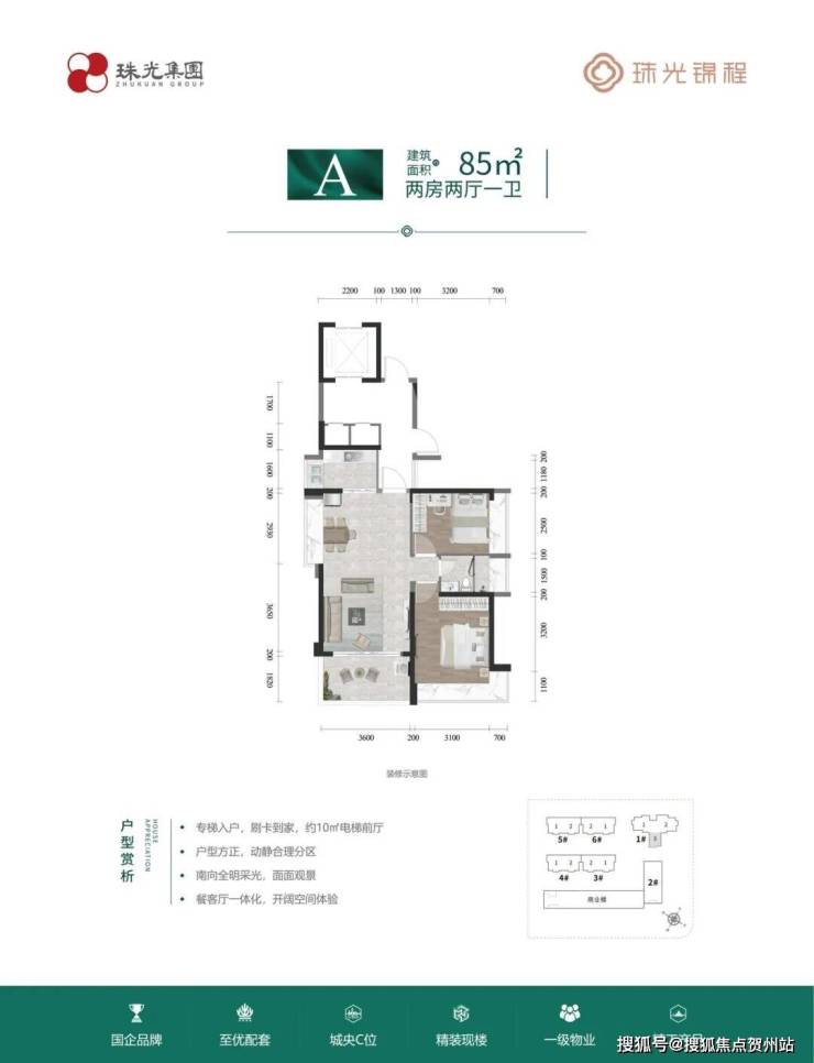 【首推产品】:首推 1 栋、6 栋。1 栋为 23 层,两梯三户, 85-110-115 m²精装二至三房;6 栋为 17 层,两梯两户板楼, 120 m²精装三房两厅两卫