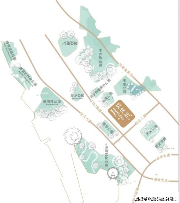 13大公园环绕,户外休闲便利,项目周边配备13大公园:流塘公园、宝安公园、碧海湾公园、西乡公园、灵芝公园、新安公园、滨海文化公园等,项目距离宝安公园直线距离仅1.5公里,距离流塘公园直线距离仅607米,出入公园环绕,宜居属性高。