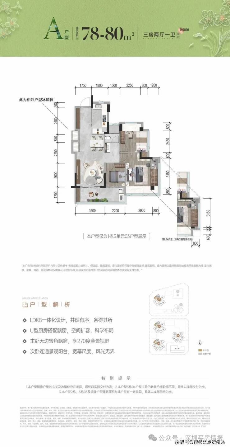 招商会展湾雍境名邸位于宝安沙井大前海会展湾片区的招商会展湾雍境名邸,本次是招商会展湾雍境二期,首推1栋3单元的195套房源,面积段有80㎡3房1卫,91㎡3房2卫,92㎡3房2卫3种户型,是3梯7户的普通高层,2027年9月精装交楼。