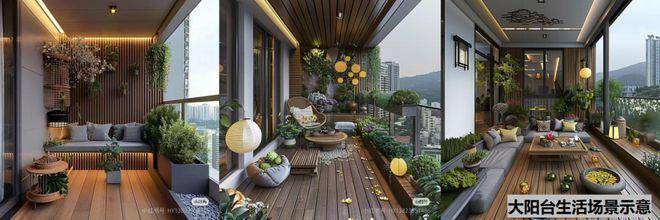 · 连接客厅的宽景阳台长约6米,这个尺度能够满足很多生活需求。除了日常晾晒以外,阳台的另一边可以作为植物小花园,或者设置卡座观景台等等;