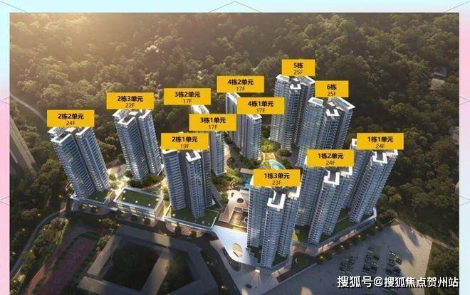 观山海家园项目规划由12座住宅楼+裙房商业+花园景观廊架主体组成,1栋1/2/3单元23-24层,2梯4户;2栋1/2/3单元19-24层,2梯5户,3栋1/2单元和4栋1/2单元17层,2梯2户;5/6栋25层,2梯4户;