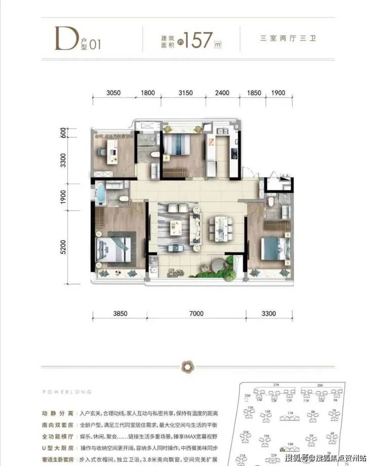 157㎡大户型:针对高端改善客户,空间布局更为阔绰,充分考虑多代同堂家庭的居住需求,实现家庭成员间的互不干扰与和谐共处。