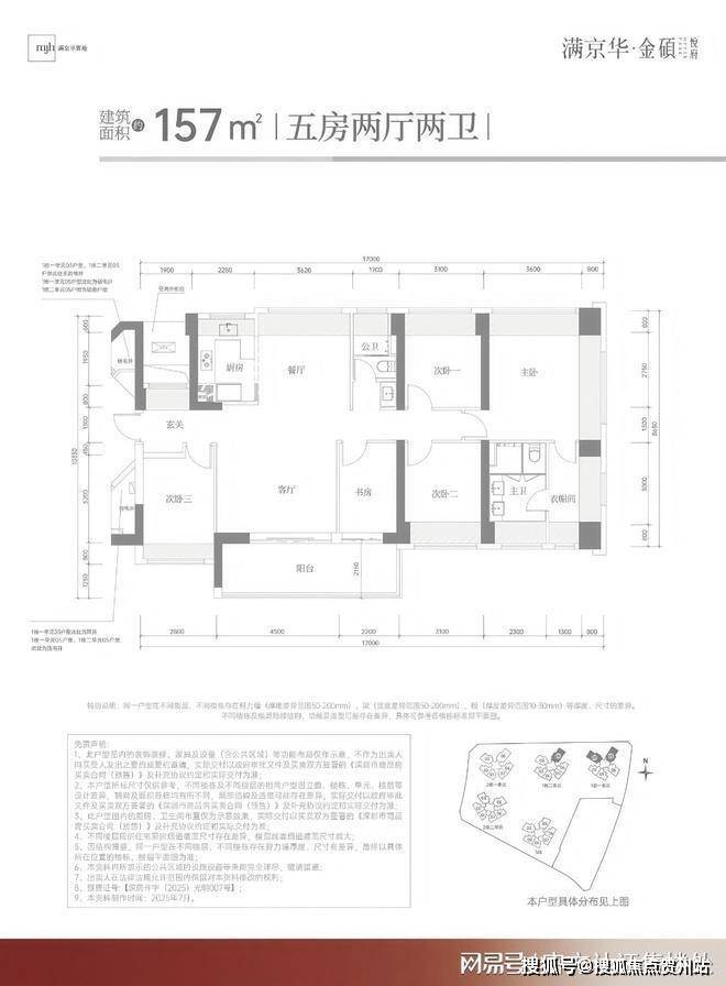 建面约157㎡五房两卫总价区间:折后总价686-713万,共20套。