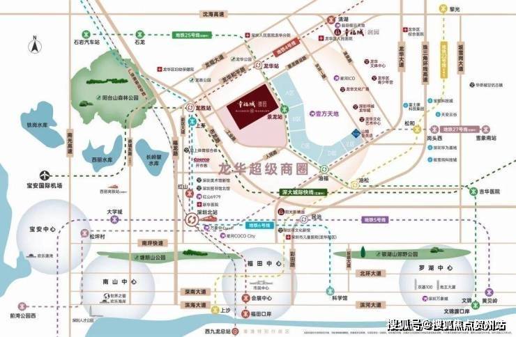 项目占位龙华超级商圈几何正芯,龙华商业中心城市更新北片区,傲踞天赋C位地块。