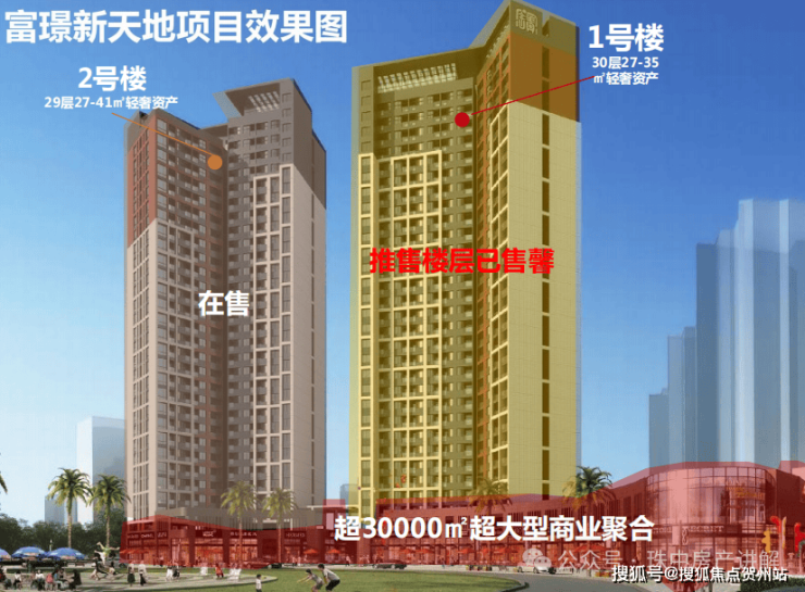 建筑层高:1号楼30层,2号楼29层