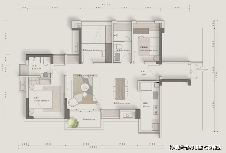 •横厅宽6米大开间,相当改善4房的舒适度