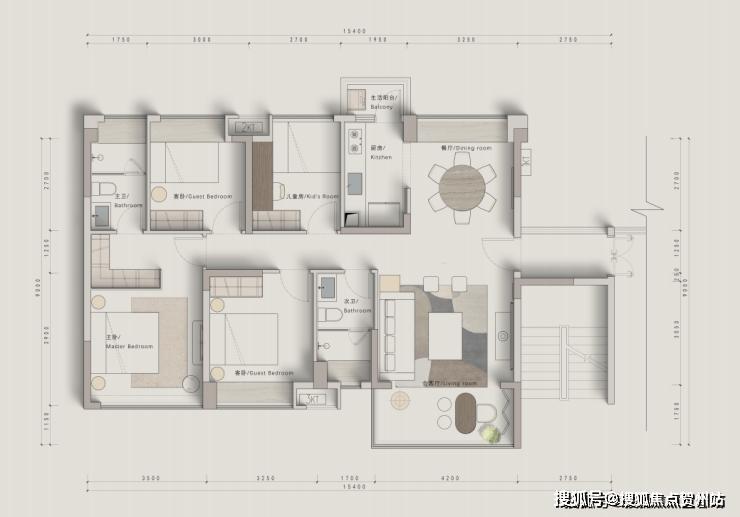 •3个房间开间超3米,是对家人的偏爱