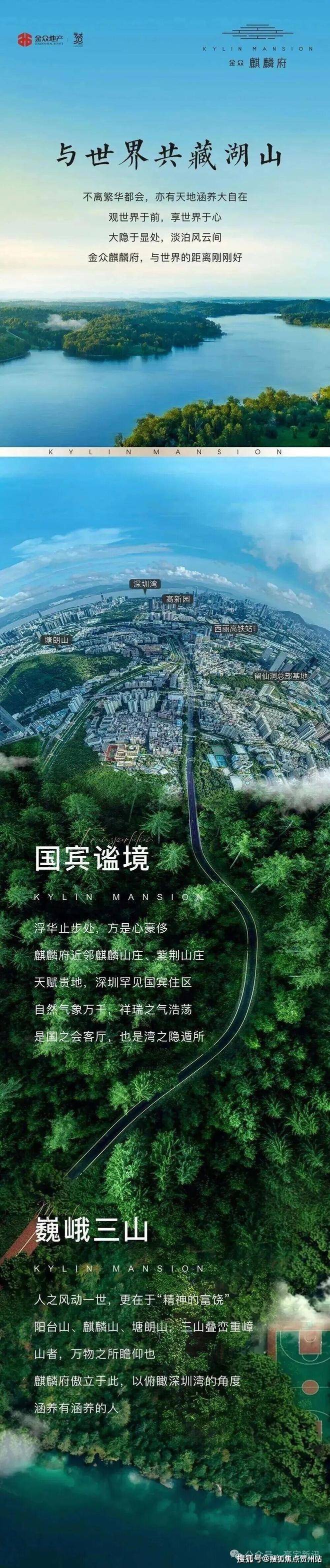 金众麒麟府,择址国宾馆麒麟山庄旁,于西丽湖山大境之上,私享国宾级尊崇礼遇。麒麟山庄,深圳第一国宾馆,占据深圳市中芯景观环境最好的西丽湖片区,深圳最高规格的接待地,深圳市委、市政府接待贵宾最高规格首选之地。